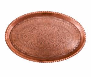 سینی بیضی قرمز مسی در اندازه و طرح های مختلفی تولید می شود. این نوع سینی ها ظاهر بسیار جذاب و درخشانی دارند. می توانند بهترین گزینه برای پذیرایی در میهمانی های
